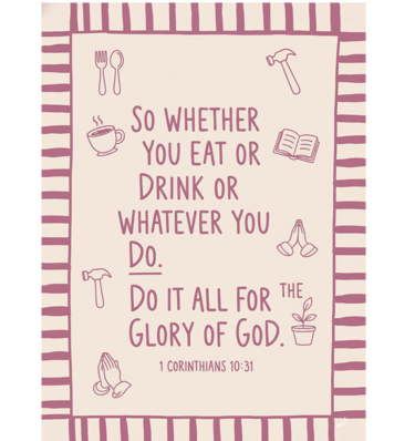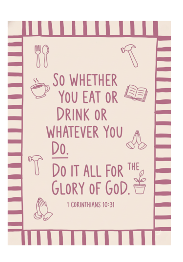 "So whether you eat or drink or whatever you do, do it all for the glory of God."