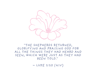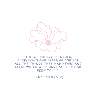 "The shepherds returned, glorifying and praising God for all the things they had heard and seen, which were just as they had been told."